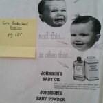 - evidence – like J&J baby ad, Norwood cover, warhol names, Snows program, tiny performance art program . . .